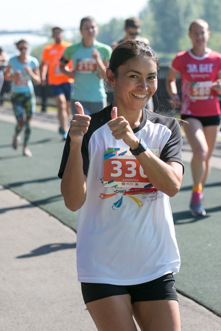 "Занимаюсь да бегом, но я спринтер. Марафоны я пять километров ни разу не бегала, сразу скажу, тяжеловато. Потому что совсем по-другому организм настроен."